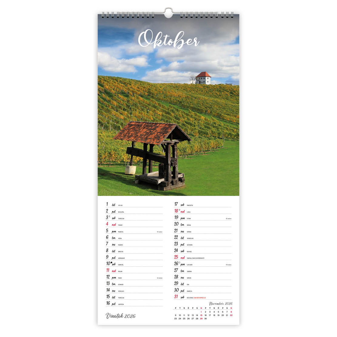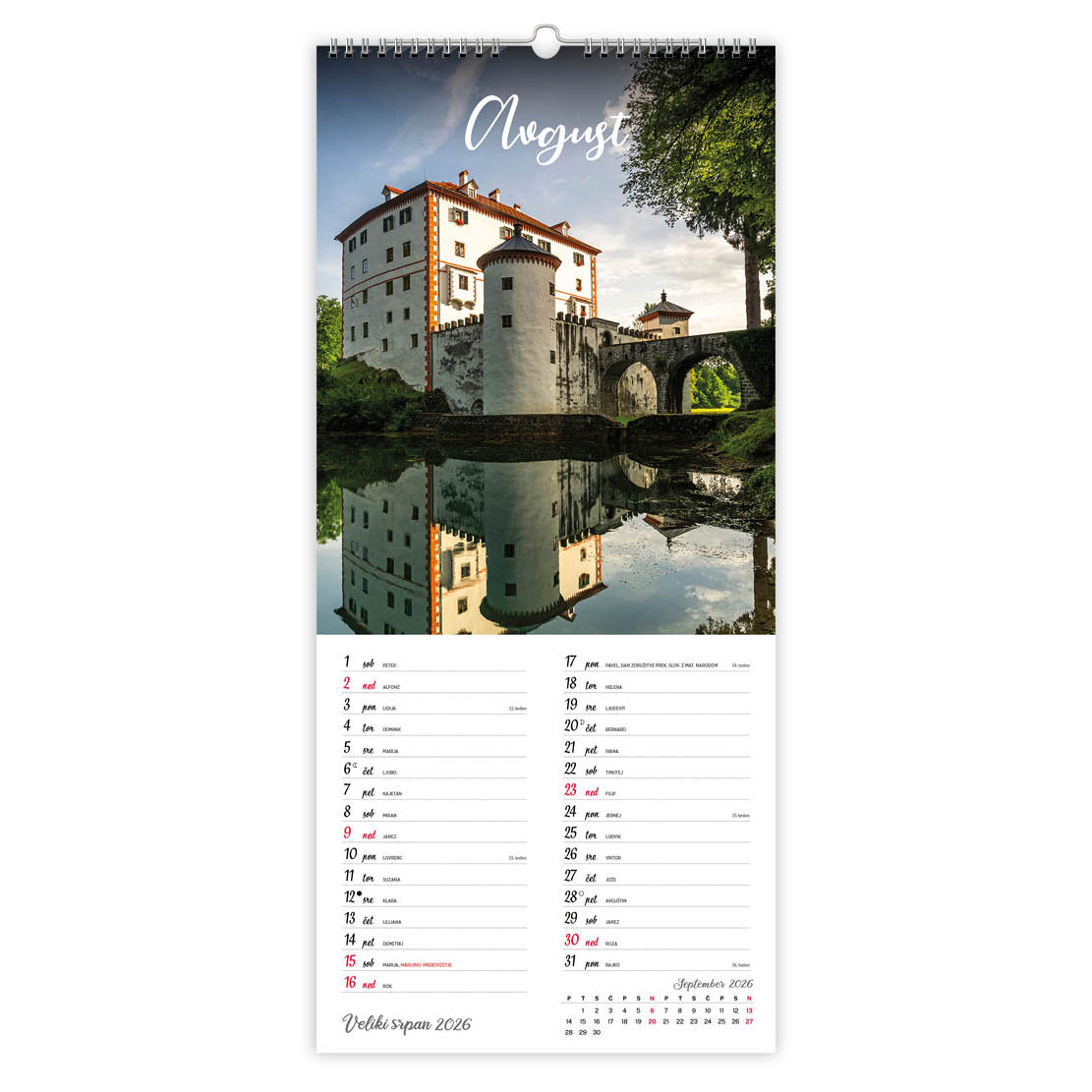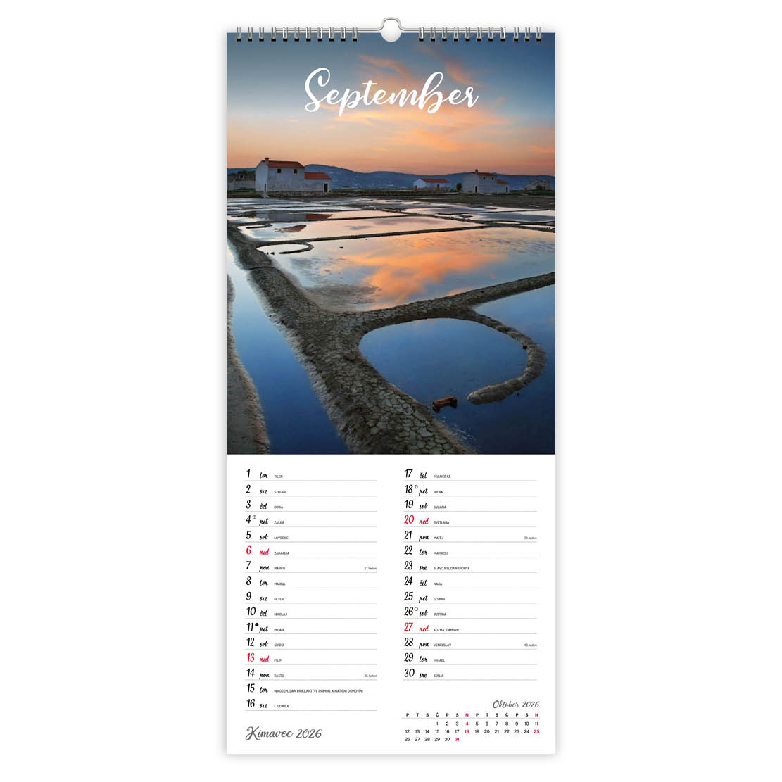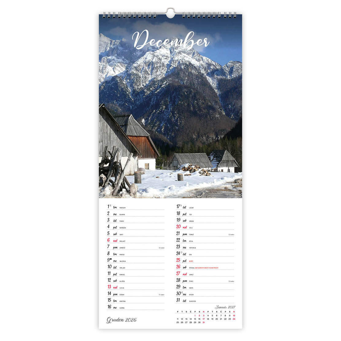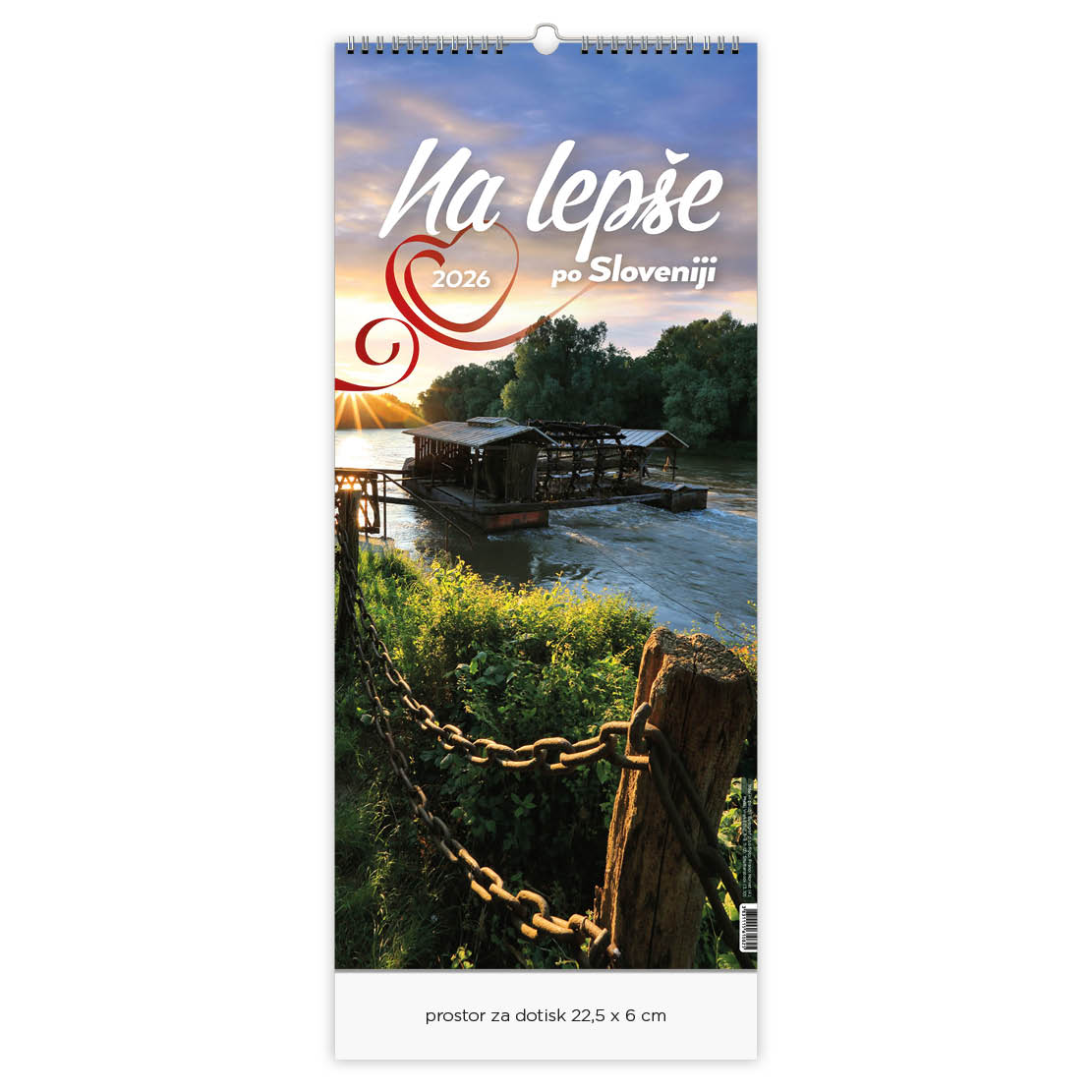 Stenski koledar Na lepše po Sloveniji 2026, 22,5x54 cm,