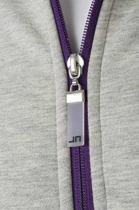Polna zadrga, pletena vrvica in notranja stran v kontrastni barvi.