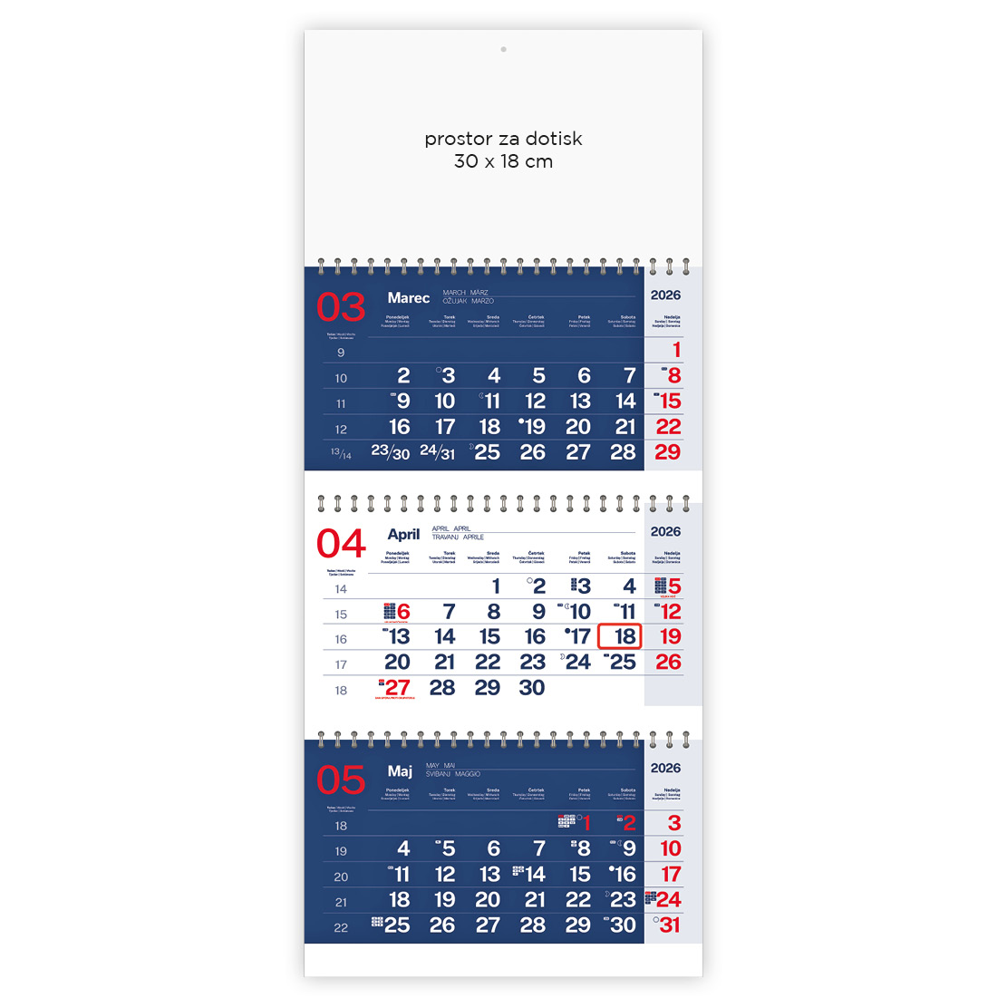 Koledar Poslovni tridelni spirala 2026